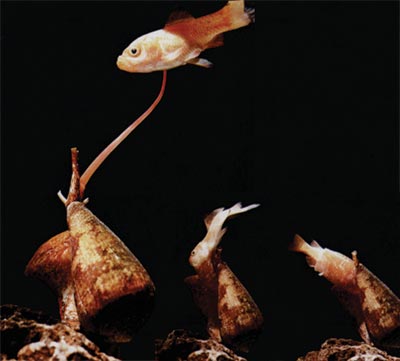 THIS SEQUENCE of events shows a cone snail catching, injecting, paralyzing, and swallowing a helpless fish.